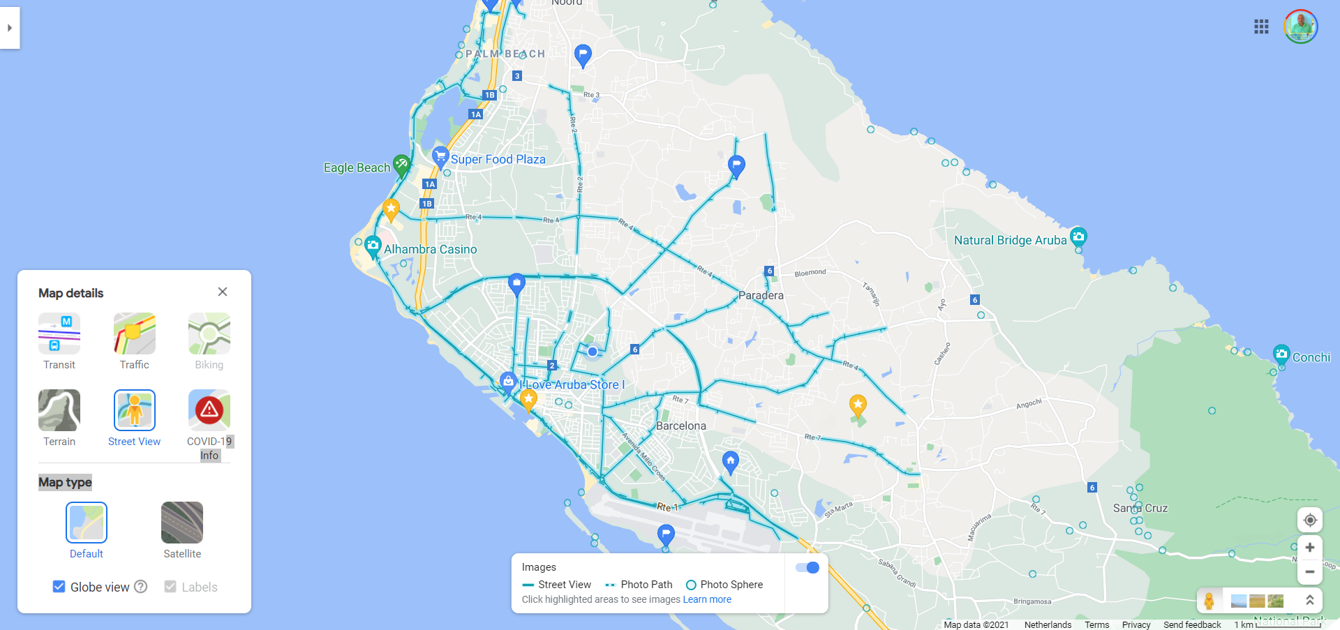 Google Street View on Aruba Google Maps